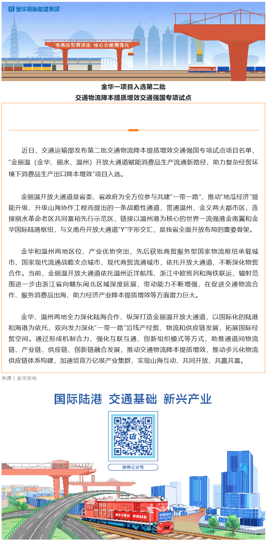 金華一項目入選第二批交通物流降本提質(zhì)增效交通強國專項試點