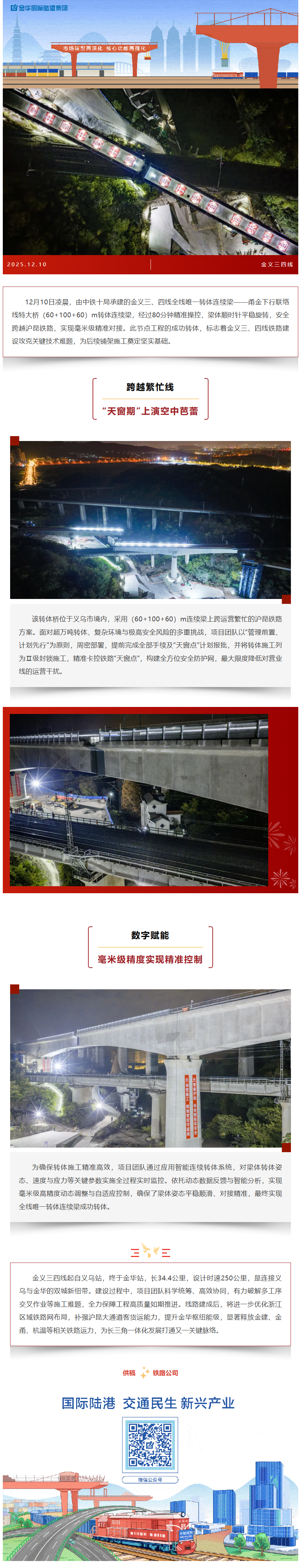 華麗轉身!金義三四線全線唯一轉體連續(xù)梁成功轉體