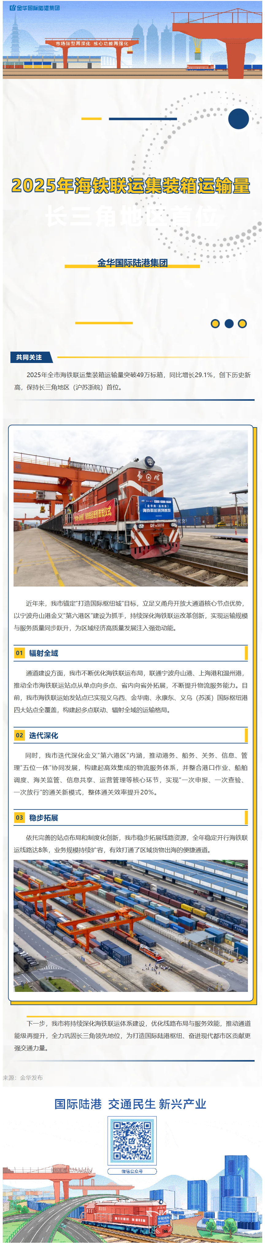 金華海鐵聯(lián)運(yùn)保持長三角首位!2025年集裝箱運(yùn)輸量超49萬標(biāo)箱